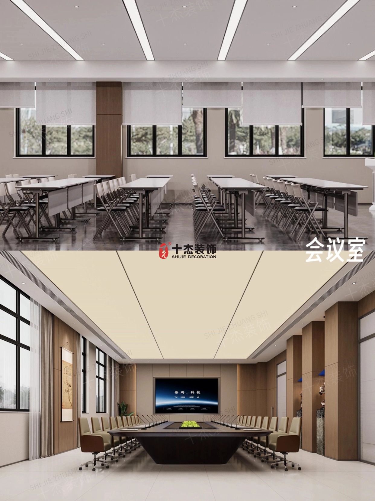 有的是高端商務(wù)會談型,長桌、舒適座椅加上大屏設(shè)備