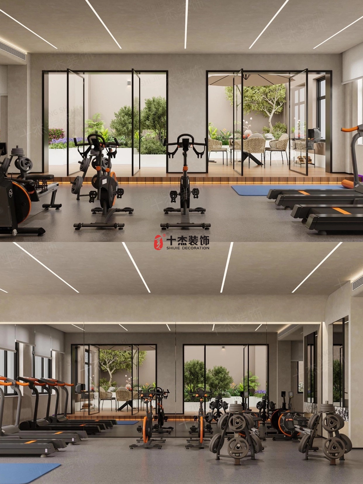 有氧區(qū)放跑步機(jī)、動(dòng)感單車,靠窗布置采光拉滿,運(yùn)動(dòng)時(shí)還能看看風(fēng)景