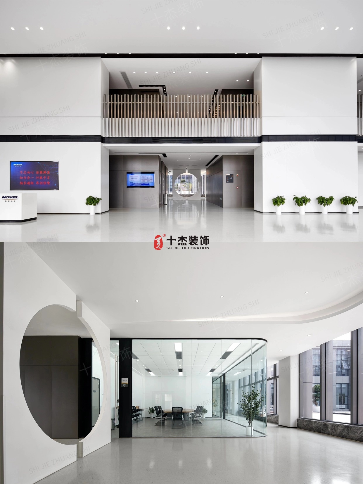 大堂做挑高 + 極簡(jiǎn)接待區(qū)