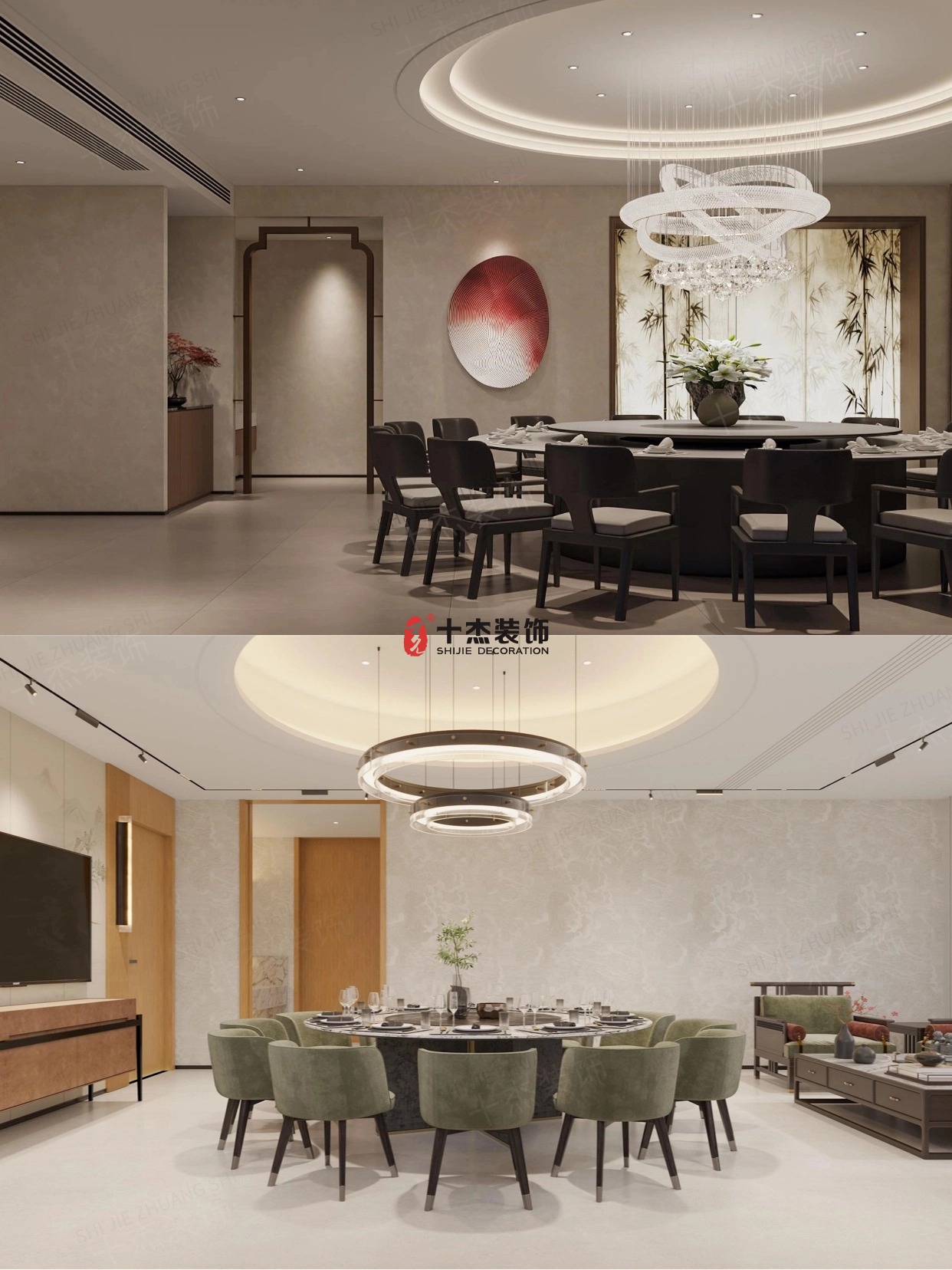 實木長桌 + 禪意擺件,水墨裝飾 + 格柵背景墻